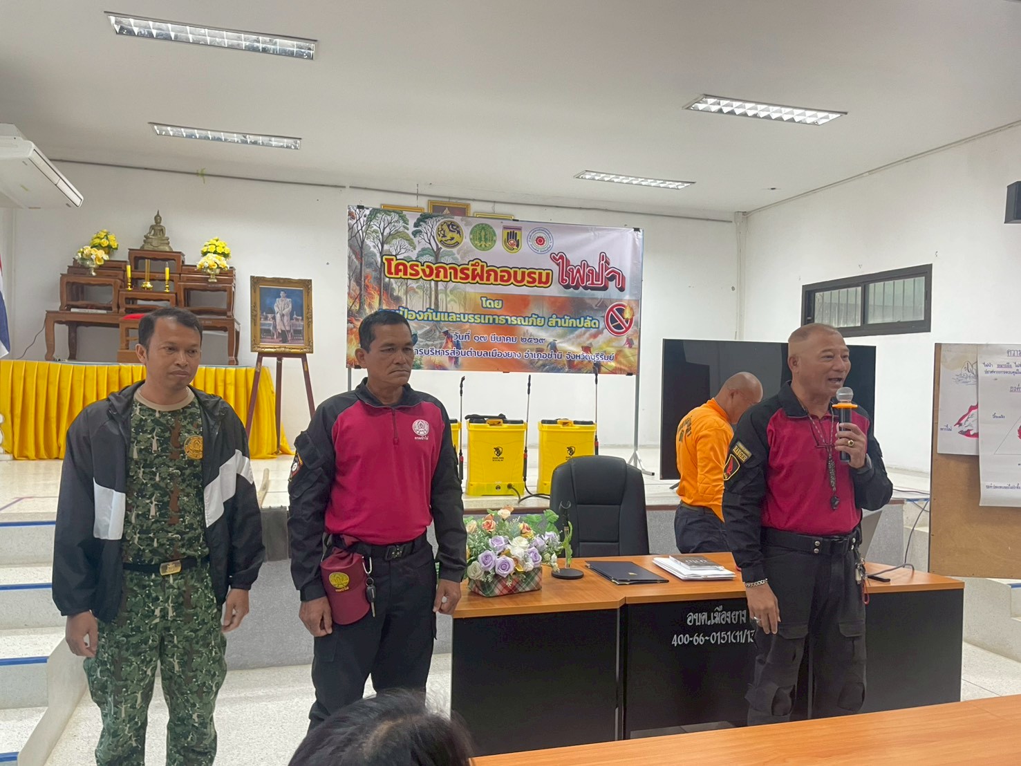 วันที่ 17   มีนาคม 2569 นายสุริยา  ศรีสัตยานุกูล ผู้ช่วยผู้อำนวยการศูนย์ อปพร.ต.เมืองยาง  เป็นประธานเปิดโครงการฝึกอบรมไฟป่า  มีผู้เข้าร่วมฝึกอบรมจำนวน 50 คน ประกอบไปด้วย อปพร.ต.เมืองยาง ผู้นำท้องที่ ท้องถิ่น เพื่อให้ความรู้ในการดูแล ควบคุมไฟ่าที่เกิดขึ้นในพื้นที่ตำบลเมืองยางและพื้นที่ตำบลใกล้เคียง