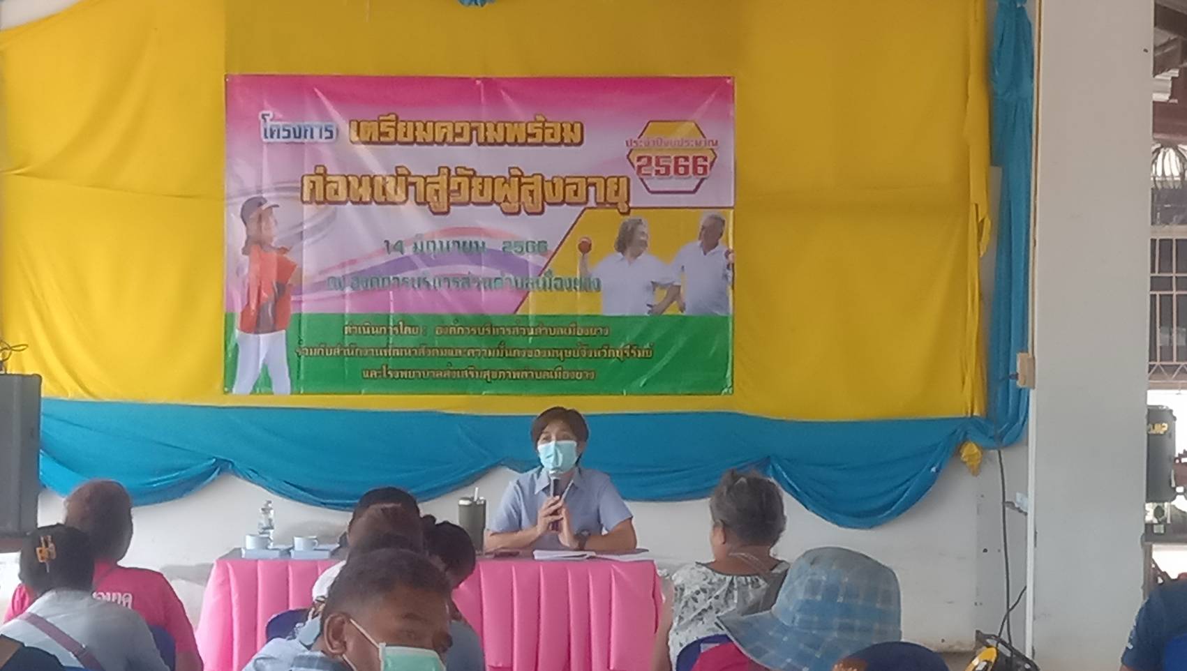 วันที่ 14 มิถุนายน 2566  อง๕การบริหารส่วนตำบลเมืองยาง  โดย กองสัวสดิการสังคม  จัดโครงการเตรียมความพร้อมก่อนเข้าสู่วัยผู้สูงอายุ  โดยมีกลุ่มเป้าหมายเข้าร่วมกิจกรรมจำนวน  50  คน